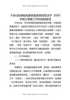 X市行政审批和便民服务局党组关于2025年前三季度工作总结的报告.docx