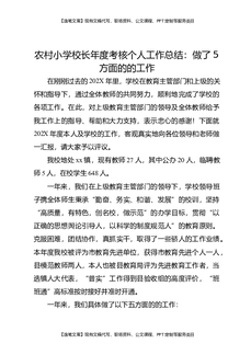 农村小学校长年度考核个人工作总结:做了5方面的的工作.docx