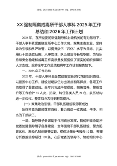 XX强制隔离戒毒所干部人事科2025年工作总结和2026年工作计划.docx