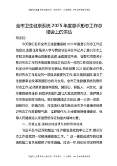 全市卫生健康系统2025年度意识形态工作总结会上的讲话.docx