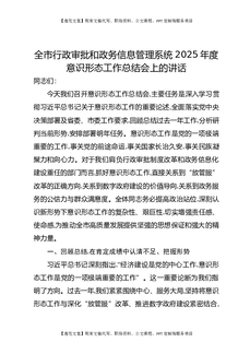 全市行政审批和政务信息管理系统2025年度意识形态工作总结会上的讲话.docx