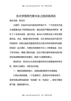 在大学党员代表大会上的总结讲话.docx