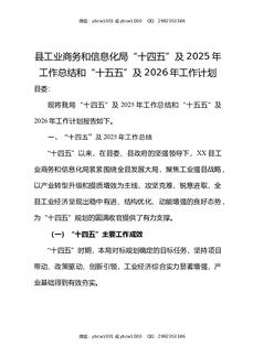 县工业商务和信息化局十四五2025年工作总结和十五五2026年工作计划.docx