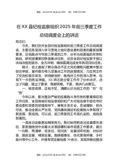在XX县纪检监察组织2025年前三季度工作总结调度会上的讲话.docx