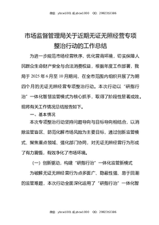 市场监督管理局关于近期无证无照经营专项整治行动的工作总结.docx