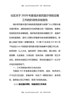 社区关于2026年度城乡居民医疗保险征缴工作的阶段性总结报告.docx