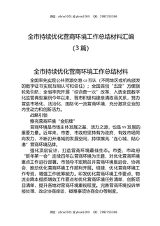 全市持续优化营商环境工作总结材料汇编(3篇).docx