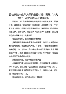 县检察院未成年人保护经验材料:聚焦“六大保护”守护未成年人健康成长.docx