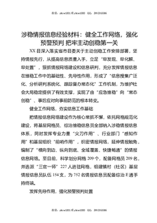 涉稳情报信息经验材料:健全工作网络,强化预警预判把牢主动创稳第一关.docx
