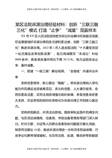 创新“三联三融三化”模式打造“止争”“减量”双赢样本——某区法院诉源治理经验材料.docx