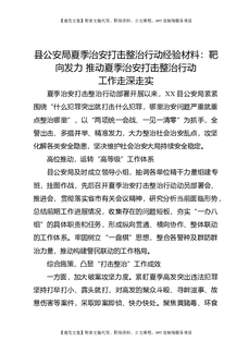 县公安局夏季治安打击整治行动经验材料:靶向发力推动夏季治安打击整治行动工作走深走实.docx
