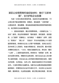 某区公安局营商环境经验材料:推行“三新举措”,全力护航企业发展.docx