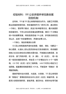 经验材料:XX公安多措并举完善命案防控机制.docx
