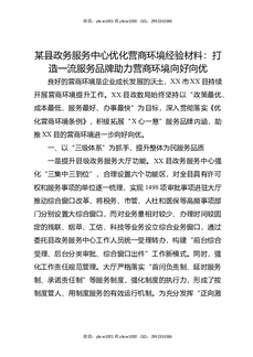 某县政务服务中心优化营商环境经验材料:打造一流服务品牌助力营商环境向好向优.docx
