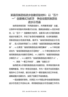 某县民族团结进步创建经验材料:以“五个一”创建模式为抓手争创全国民族团结进步示范县.docx