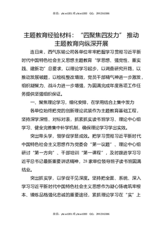 主题教育经验材料:“四聚焦四发力”推动主题教育向纵深开展.docx