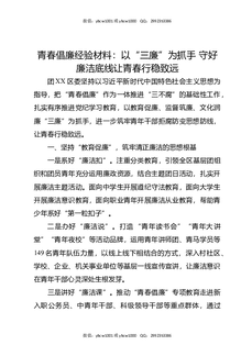 青春倡廉经验材料:以“三廉”为抓手守好廉洁底线让青春行稳致远.docx