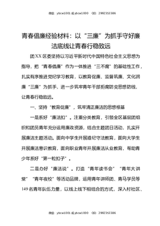 青春倡廉经验材料:以三廉为抓手守好廉洁底线,让青春行稳致远共青团.docx