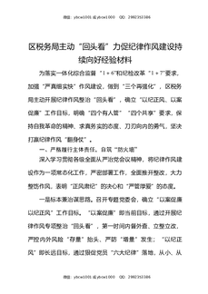 区税务局主动”回头看“力促纪律作风建设持续向好经验材料.docx