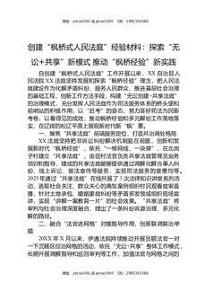 创建“枫桥式人民法庭”经验材料:探索“无讼,共享”新模式,推动“枫桥经验”新实践.docx
