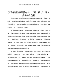 涉稳情报信息经验材料:“四个着力”深入推进主动创稳.docx