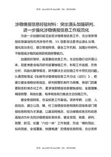 涉稳情报信息经验材料:突出源头加强研判,进一步强化涉稳情报信息工作规范化.docx