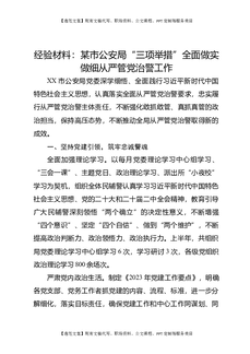 经验材料:某市公安局“三项举措”全面做实做细从严管党治警工作.docx