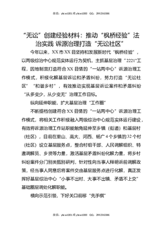 “无讼”创建经验材料:推动“枫桥经验”法治实践,诉源治理打造“无讼社区”.docx