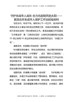 守护未成年人成长,合力托起明天的太阳——某派出所未成年人保护工作站经验材料.docx
