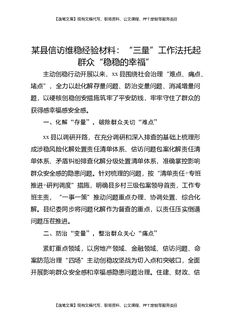 某县信访维稳经验材料:“三量”工作法托起群众“稳稳的幸福”.docx