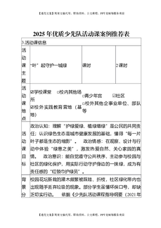 2025年优质少先队活动课案例推荐表——“叶”起守护一城绿.docx