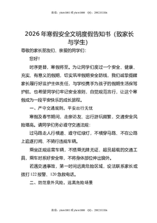 2026年寒假安全文明度假告知书(致家长与学生).doc