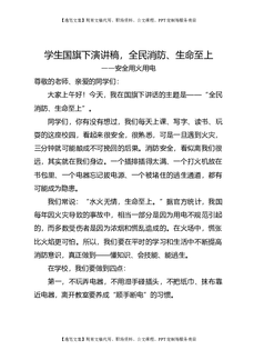 学生国旗下演讲稿,全民消防、生命至上——安全用火用电.doc