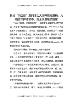 我校“消防日”系列活动火热开展报道稿:火焰蓝守护红领巾,安全线温暖校园家.doc