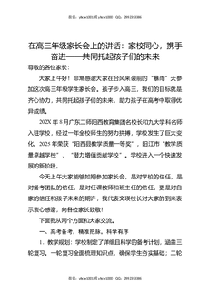 在高三年级家长会上的讲话:家校同心,携手奋进——共同托起孩子们的未来.docx