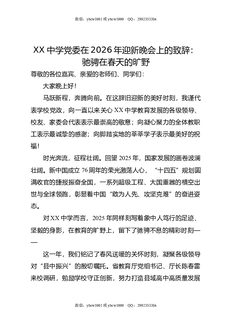 XX中学党委在2026年迎新晚会上的致辞:驰骋在春天的旷野.docx