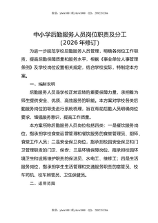 中小学后勤服务人员岗位职责及分工(2026年修订).docx