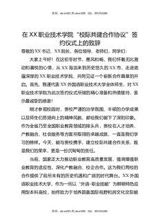 在XX职业技术学院“校际共建合作协议”签约仪式上的致辞.docx