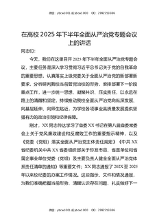 在高校2025年下半年全面从严治党专题会议上的讲话.docx
