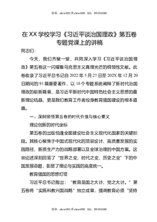 在XX学校学习《总书记谈治国理政》第五卷专题党课上的讲稿.docx