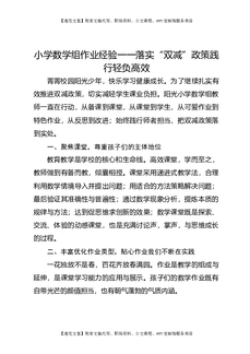 小学数学组作业经验一一落实“双减”政策践行轻负高效.docx