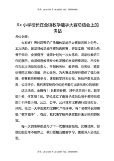 XX小学校长在全镇教学能手大赛总结会上的讲话.docx