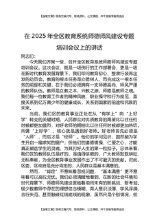 在2025年全区教育系统师德师风建设专题培训会议上的讲话.docx