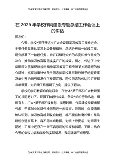 在2025年学校作风建设专题总结工作会议上的讲话.docx