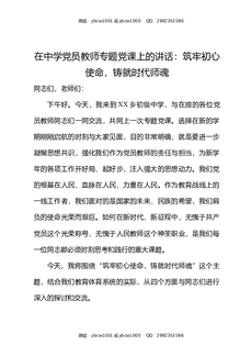 在中学党员教师专题党课上的讲话:筑牢初心使命,铸就时代师魂.docx