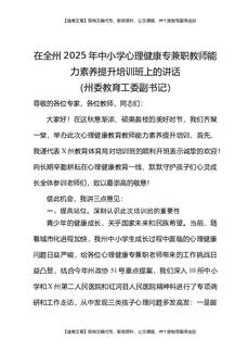 在全州2025年中小学心理健康专兼职教师能力素养提升培训班上的讲话(州委教育工委副书记).docx