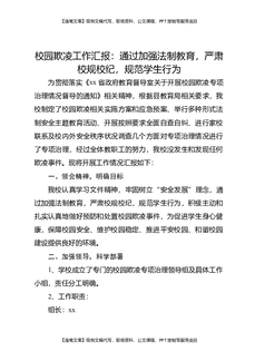 校园欺凌工作汇报:通过加强法制教育,严肃校规校纪,规范学生行为.docx