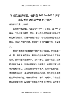 学校党支部书记2025-2026学年家长委员会成立大会上的讲话.docx