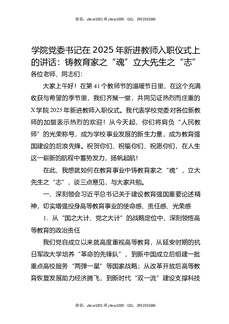 学院党委书记在2025年新进教师入职仪式上的讲话:铸教育家之“魂”立大先生之“志”.docx
