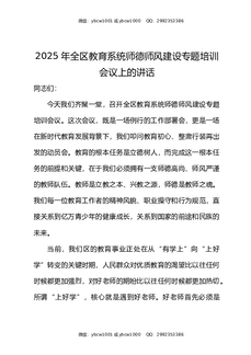 2025年全区教育系统师德师风建设专题培训会议上的讲话.docx